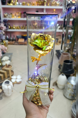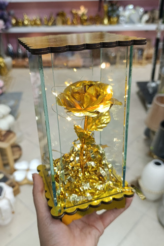 گل رز کادویی + باکس گل + چراغ خواب گل