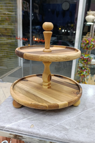 شیرینی خوری دو طبقه چوب گردو + میوه خوری چوبی + چوب گردو